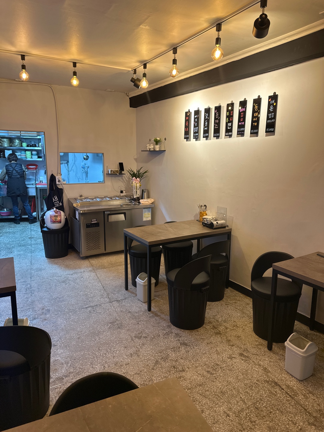 계란말이 10,000 | 똥집볶음 13,000 | 어묵탕 15,000 | 부추전 10,000 | 돼지고기 김치찌개 18,000 | 꽁치김치찌개 18,000 | 오돌뼈 13,000 | 동태찌개 18,000 | 닭도리탕 28,000