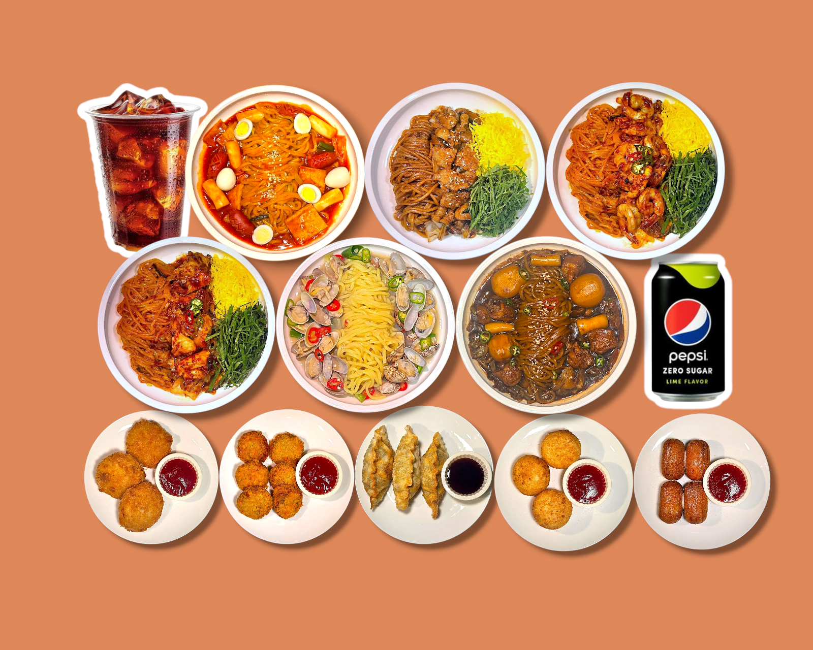 닭곱새 볶음면 14,900 | 찜닭볶음면 13,900 | 닭갈비볶음면 12,900 | 제육볶음면 12,900 | 바지락볶음면 11,900 | 면볶기 10,900