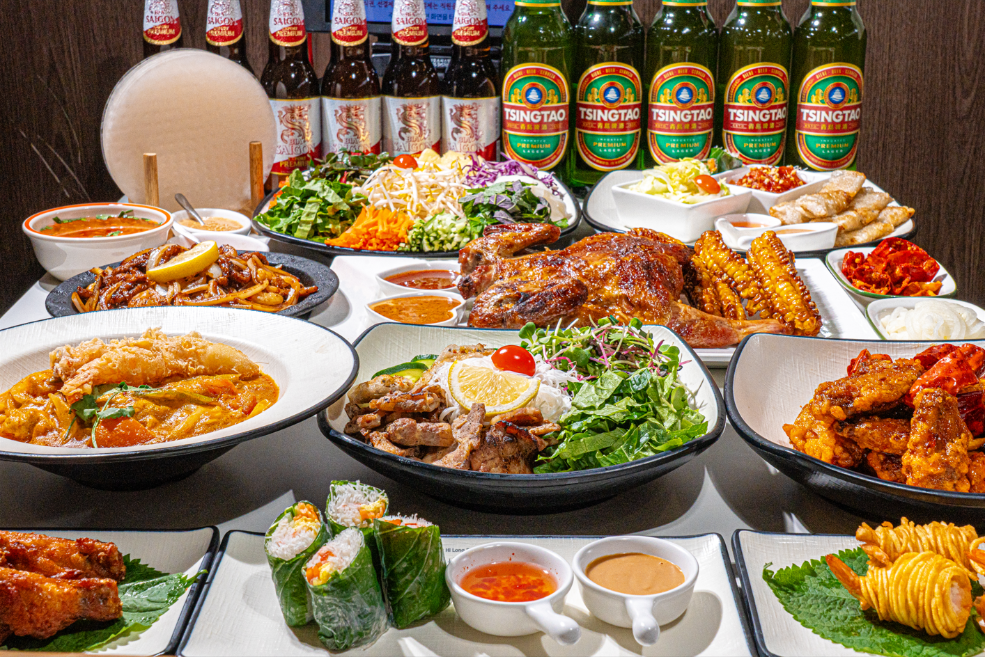 하롱베이 쌀국수 12,000 | 나시고랭 16,000 | 반미 7,500 | 분짜 16,000 | 향라 깐풍 치킨윙 20,000 | 돼지고기볶음덮밥 16,000 | 새우퐁커리 16,000 | 해산물 쌀국수 13,000 | 스프링롤 5,500 | 감자말이 새우튀김 7,000 | 월남쌈 (1인)-2인 이상 주문가능 20,000 | 바베큐 삼겹 25,000 | 바베큐 닭갈비 22,000 | 바베큐 고추 치킨 23,000 | 팟타이 16,500 | 향라 간장 치킨윙 20,000 | 게살 새우 볶음밥 14,500 | 푸팟퐁커리 26,000 | 바베큐 치킨 쌀국수 13,000 | 하노이 쌀국수 13,000 | 똠양꿍 16,500 | 똠양 쌀국수 16,500 | 매운 해산물 쌀국수 13,500 | 매운 하롱베이 쌀국수 12,500 | 뽀삐아(짜조&에그롤) 7,000 | 빗가이텃 7,500 | 모듬 에피타이저 18,000 | 수제 짜조 16,000 | 공심채 13,000