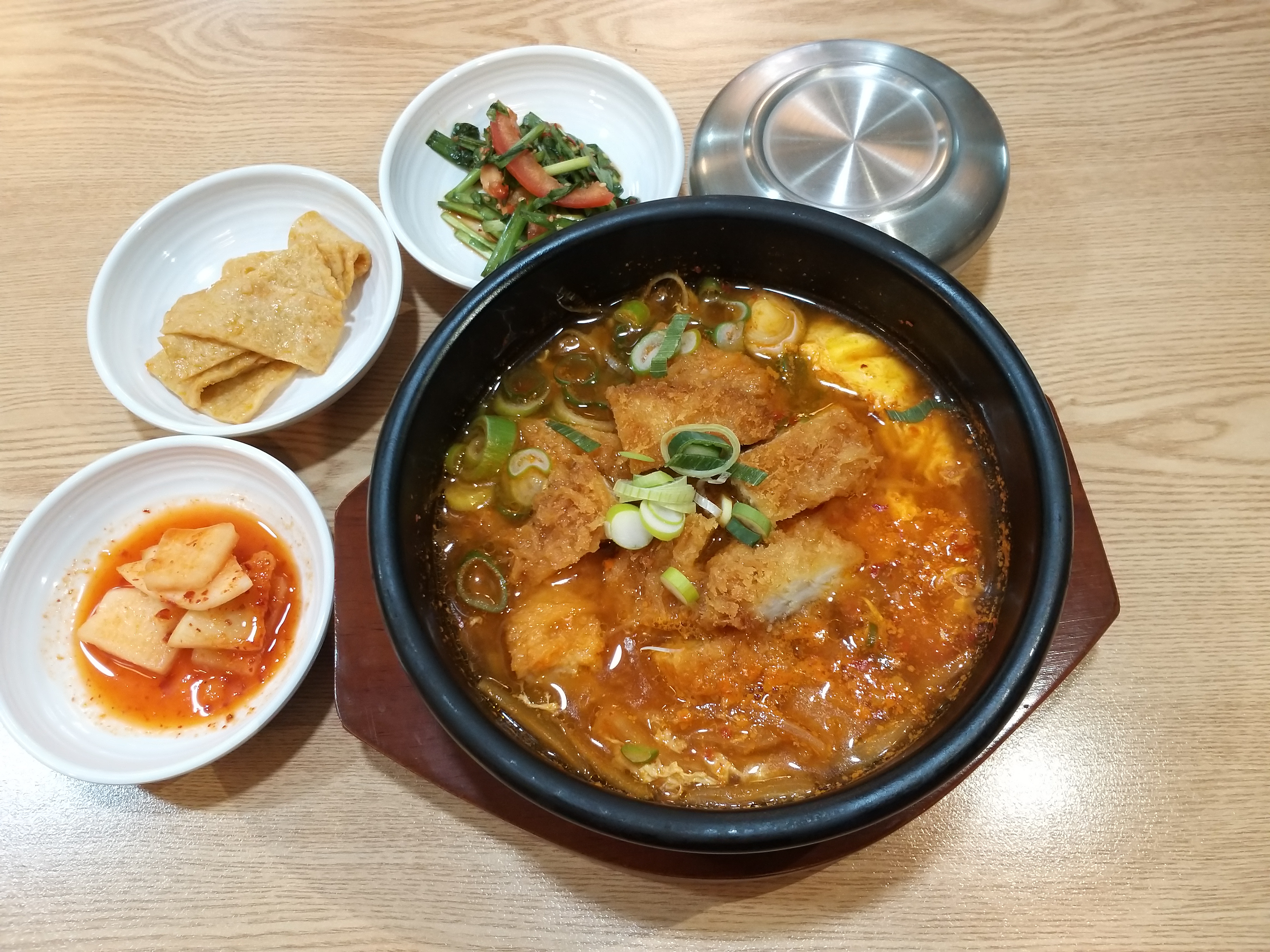 “”뚝배기 속 얼큰함과 돈가스의 만남””